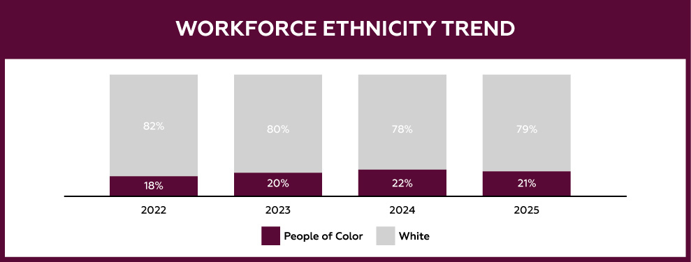 As we continue to grow, we remain focused on attracting and retaining exceptional talent that aligns with Bridgewater’s unconventional culture. Supporting a diverse workforce is central to this effort, and we are committed to fostering inclusion and awareness through thoughtful recruiting practices, meaningful learning opportunities, and engagement within the communities we serve.