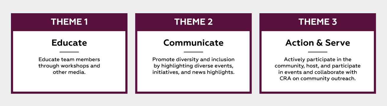 In 2019, Bridgewater Bank established a DE&I Committee which aims to build an inclusive culture that encourages, supports, and celebrates the diversity of our team members and communities in which we live and work. The committee is made up of 10 team members from various levels and functions across the organization. It is organized around three themes aimed at fostering diversity awareness among team members by way of education, communication, and service within our community.